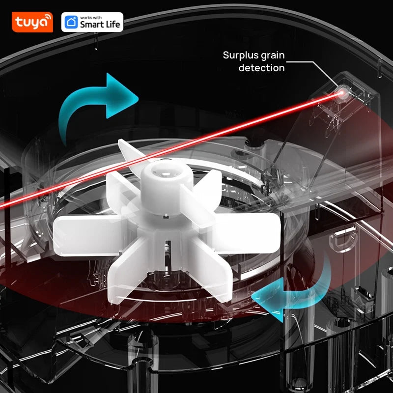 Manual Grain Dispensing: The feeder also features a manual grain dispensing function, allowing you to dispense food for your pets manually if needed.